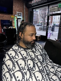 - Fade, Afro, Frohawk, Taper, etc. w/Beard & Mustache Trim - $60